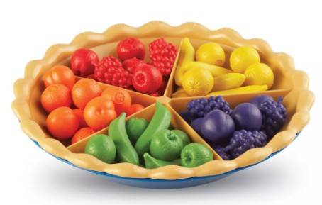 Make learning early number skills, including counting, as easy (and fun) as pie. Sorting cards go on the bottom of the pan to provide visual cues that support success. The top crust becomes a bowl to conveniently hold counters. Jumbo Tweezers reinforce fine motor skills. 68-piece set.