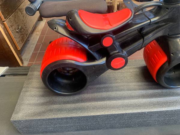 My First Balance Bike. For indoor use. Recommended for ages 1-3. Yes, the wheels actually do rotate and is made to be ridden. The wheels are wide so it's easy to stay balanced. It provides the child with the idea of balancing for the next step. This balance bike was kept inside and have never been out on the pavement therefore it's nice and clean. I'll let its photos speak for itself.