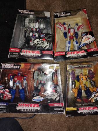 Transformers titanium series (plastic & metal) $40 each Optimus & megatron 2 pack $85 limited edition
