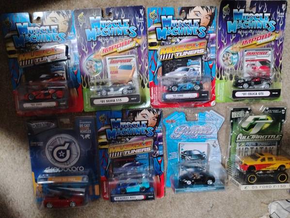 I have multiple listings with different collectibles marked #1, #2 #2 and #4 selling off my collection to pay some medical bills as I'll be in Providence hospital in Torrance for some surgeries 🤢 also ( not pictured) box full of hot wheels from late 90's to early 2000's includes wide fat tires set, anime, clown, patriot, treasure hunt, exotics, specialty, red line and others $$230