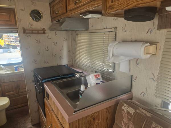 Runs great! Has very low mileage, about 49000 miles! Generator works. Lights work. I just bought a brand new battery for it and changed the spark plugs, rotor and cap. It has a refrigerator, microwave, kitchen, water faucets, toilet and shower! It was valued at around $14,000 plus. The title is clean and the new registration was just paid.