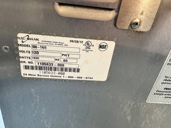 THIS IS AN Alto-Shaam 500-TH/II Undercounter Cook and Hold Oven with Classic Controls - 120V, 1,900W. THEY GO FOR OVER $4700 NEW AT $1000 IT IS A GREAT BUY. UNIT HAS BEEN TESTED AND WORKS EXCELLENTLY. We are located at GENE SHOOK RESTAURANT EQUIPMENT at 12583 Crenshaw Blvd , in Hawthorne CA , 90250. Call us for all your restaurant equipment needs. We readily stock both new and used and always great prices! We specialize in refrigerators, freezers, fryers, griddles, stoves, prep tables, stainless steel tables, safes, char grills, keg orators, bar back, sinks, ice machines, and much more! CALL US AT 310_292_1182 Always call us for the best deal