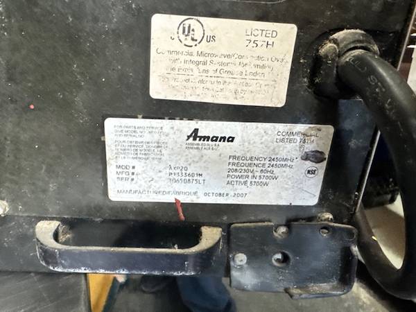 THIS IS An Amana Commercial Products AXP20 Convection Microwave Rapid Cook Oven Countertop Ventless Express Radiant. NEW THEY ARE OVER $13,000 THIS IS A GREAT DEAL FOR ONLY $300. THE UNIT HAS BEEN IN STORAGE SO THE WARRANTY MAY NOT APPLY. We are located at GENE SHOOK RESTAURANT EQUIPMENT at 12583 Crenshaw Blvd , in Hawthorne CA , 90250. Call us for all your restaurant equipment needs. We readily stock both new and used and always great prices! We specialize in refrigerators, freezers, fryers, griddles, stoves, prep tables, stainless steel tables, safes, char grills, keg orators, bar back, sinks, ice machines, and much more! CALL US AT 310_292_1182 Always call us for the best deal