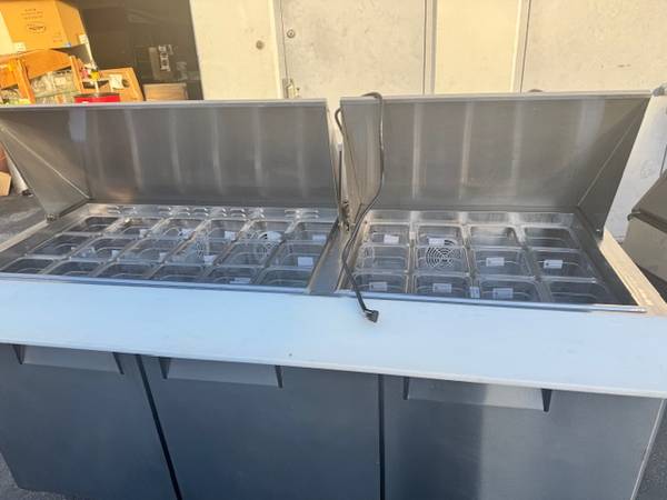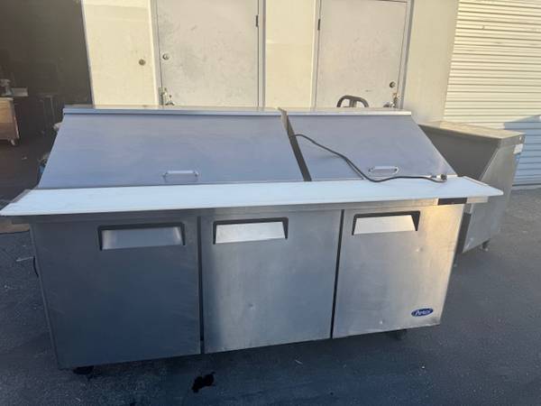 THIS IS AN Atosa MSF8308GR, 73" 3 Door Mega Top Sandwich / Salad Prep Table, (30) 1/6 size pans. THEY GO FOR OVER $3384 NEW AT $1250 IT IS A GREAT BUY. UNIT WAS BUILT JUNE 2021 ONLY 4 YEARS OF USE. We are located at GENE SHOOK RESTAURANT EQUIPMENT at 12583 Crenshaw Blvd , in Hawthorne CA , 90250. Call us for all your restaurant equipment needs. We readily stock both new and used and always great prices! We specialize in refrigerators, freezers, fryers, griddles, stoves, prep tables, stainless steel tables, safes, char grills, keg orators, bar back, sinks, ice machines, and much more! CALL US AT 310_292_1182 Always call us for the best deal