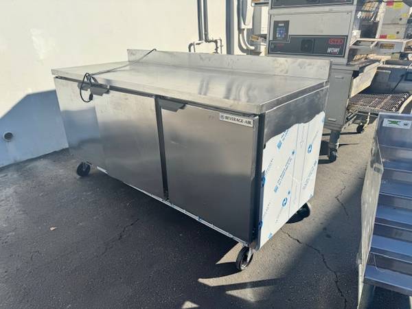 THIS IS A Beverage-Air WTR72AHC-FIP, 72" 3 Solid Door Worktop Refrigerator. THEY GO FOR FROM OVER $4,700 NEW AT $1400 IT IS A GREAT BUY. UNIT LOOKS LIKE NEW MAY BE NEW OR IS CLOSE TO NEW. We are located at GENE SHOOK RESTAURANT EQUIPMENT at 12583 Crenshaw Blvd , in Hawthorne CA , 90250. Call us for all your restaurant equipment needs. We readily stock both new and used and always great prices! We specialize in refrigerators, freezers, fryers, griddles, stoves, prep tables, stainless steel tables, safes, char grills, keg orators, bar back, sinks, ice machines, and much more! CALL US AT 310_292_1182 Always call us for the best deal