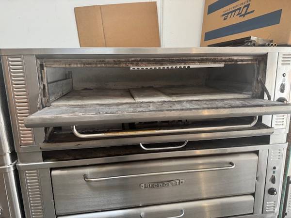 THIS IS A Blodgett 1060 Natural Gas Double Pizza Deck Oven with Draft Diverter - 170,000 BTU. THEY GO FOR OVER $53,500 NEW AT $8500 IT IS A GREAT BUY. LATE MODELS BUILT 12-22-2015 ONLY USED 9 YEARS! NOTE WE HAVE 1 DOUBLE STACK SET LEFT (1 HAS ALREADY SOLD) PRICE IS FOR ONE DOUBLE STACK UNIT. UNITS HAVE BEEN REFURBISHED WE REPLACED OVER $2000 IN PARTS FOR THESE OVENS AND THEY HAVE BEEN TESTED BY OUT TECH THEY ARE VERY NICE. We are located at GENE SHOOK RESTAURANT EQUIPMENT at 12583 Crenshaw Blvd , in Hawthorne CA , 90250. Call us for all your restaurant equipment needs. We readily stock both new and used and always great prices! We specialize in refrigerators, freezers, fryers, griddles, stoves, prep tables, stainless steel tables, safes, char grills, keg orators, bar back, sinks, ice machines, and much more! CALL US AT 310_292_1182 Always call us for the best deal