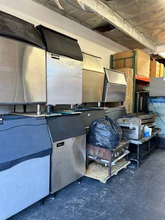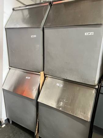 I HAVE ABOUT ICE BINS FOR A COMMERCIAL ICE MACHINE (NO ICE MACHINE JUST THE BIN) THEY RANGE FROM $150 FOR 30" WIDE GREY OLDER ICE BINS, $300 FOR NICE 30" STAINLESS STEEL BINS AND $400 FOR NICE 48" STAINLESS STEEL BINS DEPENDING ON CONDITION PRICE IS EACH. YOU CAN SEE SOME ITEMS PRICED IN PICTURES. We are located at GENE SHOOK RESTAURANT EQUIPMENT at 12583 Crenshaw Blvd , in Hawthorne CA , 90250. Call us for all your restaurant equipment needs. We readily stock both new and used and always great prices! We specialize in refrigerators, freezers, fryers, griddles, stoves, prep tables, stainless steel tables, safes, char grills, keg orators, bar back, sinks, ice machines, and much more! CALL US AT 310_292_1182 Always call us for the best deal