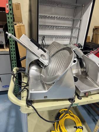 THIS IS A Globe G12 12" Manual Gravity Feed Slicer - 1/2 hp. THEY GO FOR OVER $1,800 NEW AT $750 IT IS A GREAT BUY. We are located at GENE SHOOK RESTAURANT EQUIPMENT at 12583 Crenshaw Blvd , in Hawthorne CA , 90250. Call us for all your restaurant equipment needs. We readily stock both new and used and always great prices! We specialize in refrigerators, freezers, fryers, griddles, stoves, prep tables, stainless steel tables, safes, char grills, keg orators, bar back, sinks, ice machines, and much more! CALL US AT 310_292_1182 Always call us for the best deal