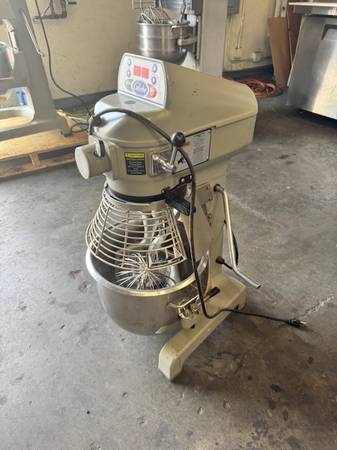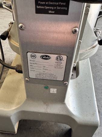 THIS IS A GLOBE SP20 20 QUART MIXER WITH 3 ATTACHMENTS INCLUDE DOUGH HOOK, WIRE WHIP AND BEATER. THEY GO FOR OVER $3,100 NEW AT $1500 IT IS A GREAT BUY. We are located at GENE SHOOK RESTAURANT EQUIPMENT at 12583 Crenshaw Blvd , in Hawthorne CA , 90250. Call us for all your restaurant equipment needs. We readily stock both new and used and always great prices! We specialize in refrigerators, freezers, fryers, griddles, stoves, prep tables, stainless steel tables, safes, char grills, keg orators, bar back, sinks, ice machines, and much more! CALL US AT 310_292_1182 Always call us for the best deal