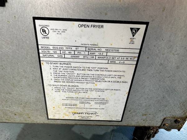 THIS IS A Henny Penny EEG243.0_NAT 47 Inch Gas Deep Fryer 30 lb Capacity with Oil Guardian ENERGY STAR®. THEY GO FOR OVER $37,400 NEW AT $7500 IT IS A GREAT BUY. We are located at GENE SHOOK RESTAURANT EQUIPMENT at 12583 Crenshaw Blvd , in Hawthorne CA , 90250. Call us for all your restaurant equipment needs. We readily stock both new and used and always great prices! We specialize in refrigerators, freezers, fryers, griddles, stoves, prep tables, stainless steel tables, safes, char grills, keg orators, bar back, sinks, ice machines, and much more! CALL US AT 310_292_1182 Always call us for the best deal