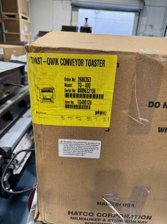 THIS IS A NEW Hatco TQ-800H Toast Qwik Conveyor Toaster - 3" Opening. THESE GO FOR OVER $1950 NEW. THIS IS A GREAT DEAL AT $950. WE HAVE 3 UNITS PRICE IS EACH. I ALSO HAVE 1 OF HATCO TQ-400 TOASTER FOR $850. THESE UNITS WERE IN STORAGE AND WARRANTY MAY NOT APPLY. We are located at GENE SHOOK RESTAURANT EQUIPMENT at 12583 Crenshaw Blvd, in Hawthorne CA, 90250. Call us for all your restaurant equipment needs. We readily stock both new and used and always have great prices! We specialize in refrigerators, freezers, fryers, griddles, stoves, prep tables, stainless steel tables, safes, char grills, keg orators, bar backs, sinks, ice machines, and much more! CALL US AT 310_292_1182 Always call us for the best deal