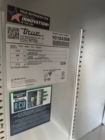 THIS IS A NEW True TUC-24G-HC~FGD01 24" Undercounter Refrigerator with Glass Door. THEY GO FOR OVER $3250 NEW AT $1100 IT IS A GREAT BUY. UNIT WAS IN STORAGE SO WARRANTY MAY NOT APPLY. We are located at GENE SHOOK RESTAURANT EQUIPMENT at 12583 Crenshaw Blvd , in Hawthorne CA , 90250. Call us for all your restaurant equipment needs. We readily stock both new and used and always great prices! We specialize in refrigerators, freezers, fryers, griddles, stoves, prep tables, stainless steel tables, safes, char grills, keg orators, bar back, sinks, ice machines, and much more! CALL US AT 310_292_1182 Always call us for the best deal
