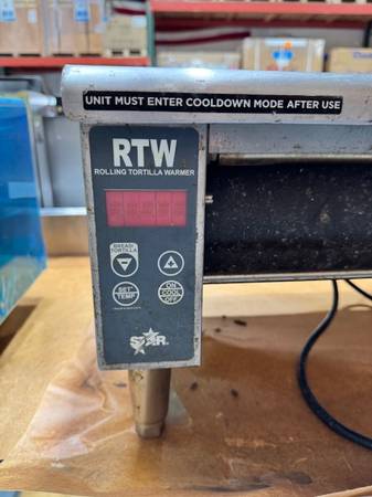 THIS IS A Star RTW14EA Electric Rolling Tortilla Warmer - (900) 6" Tortillas/hr, 120v. THESE GO FOR OVER $8000 NEW. THIS IS A GREAT DEAL AT $600 NOTE IT IS MISSING TOP IN FEED SEE PICS. We are located at GENE SHOOK RESTAURANT EQUIPMENT at 12583 Crenshaw Blvd , in Hawthorne CA , 90250. Call us for all your restaurant equipment needs. We readily stock both new and used and always great prices! We specialize in refrigerators, freezers, fryers, griddles, stoves, prep tables, stainless steel tables, safes, char grills, keg orators, bar back, sinks, ice machines, and much more! CALL US AT 310_292_1182 Always call us for the best deal
