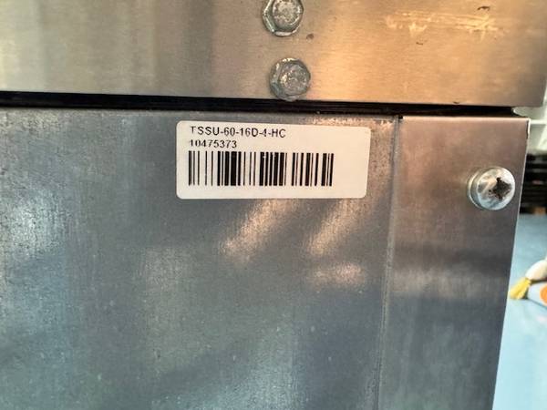 THIS IS A USED True TSSU-60-16D-4-HC 60 3/8" Refrigerated Sandwich Prep Table with Four Drawers SERIAL 10475373 BUILT 6-28-2022. THEY GO FOR OVER $7819 NEW AT $2250 IT IS A GREAT BUY. We are located at GENE SHOOK RESTAURANT EQUIPMENT at 12583 Crenshaw Blvd , in Hawthorne CA , 90250. Call us for all your restaurant equipment needs. We readily stock both new and used and always great prices! We specialize in refrigerators, freezers, fryers, griddles, stoves, prep tables, stainless steel tables, safes, char grills, keg orators, bar back, sinks, ice machines, and much more! CALL US AT 310_292_1182 Always call us for the best deal