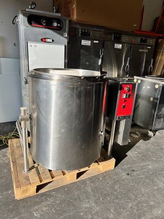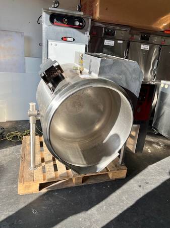 THIS IS A Vulcan K60GLT-NAT Natural Gas 60 Gallon Tilting 2/3 Steam Jacketed Kettle - 100,000 BTU. THEY GO FOR OVER $50,400 NEW AT $4750 IT IS A GREAT BUY. YOU WILL SEE OLD USED ONES GO FOR MORE THAN THIS LIKE NEW UNIT. WE HAVE TESTED UNIT IT WORKS EXCELLENT. We are located at GENE SHOOK RESTAURANT EQUIPMENT at 12583 Crenshaw Blvd , in Hawthorne CA , 90250. Call us for all your restaurant equipment needs. We readily stock both new and used and always great prices! We specialize in refrigerators, freezers, fryers, griddles, stoves, prep tables, stainless steel tables, safes, char grills, keg orators, bar back, sinks, ice machines, and much more! CALL US AT 310_292_1182 Always call us for the best deal