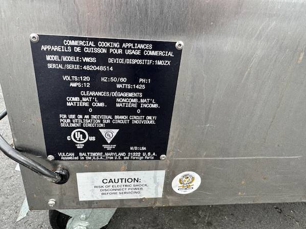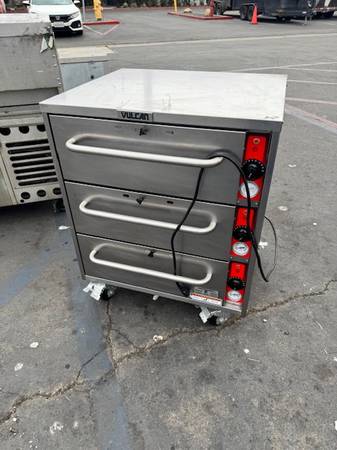 THIS IS A Vulcan VW3S Freestanding Three Drawer Warmer - 120V, 1425W. THEY GO FOR OVER $3721 NEW AT $750 IT IS A GREAT BUY. We are located at GENE SHOOK RESTAURANT EQUIPMENT at 12583 Crenshaw Blvd , in Hawthorne CA , 90250. Call us for all your restaurant equipment needs. We readily stock both new and used and always great prices! We specialize in refrigerators, freezers, fryers, griddles, stoves, prep tables, stainless steel tables, safes, char grills, keg orators, bar back, sinks, ice machines, and much more! CALL US AT 310_292_1182 Always call us for the best deal