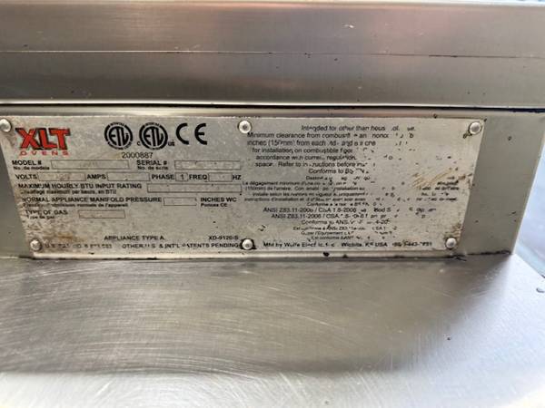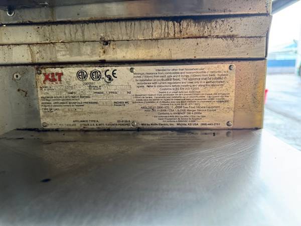 THIS IS AN XLT Pizza Oven Conveyor XLT 3270 DOUBLE Stack Nat Gas. THEY GO FOR OVER $$$$$ NEW AT $7750 IT IS A GREAT BUY. UNIT WAS BUILT NOVEMBER 2009. We are located at GENE SHOOK RESTAURANT EQUIPMENT at 12583 Crenshaw Blvd , in Hawthorne CA , 90250. Call us for all your restaurant equipment needs. We readily stock both new and used and always great prices! We specialize in refrigerators, freezers, fryers, griddles, stoves, prep tables, stainless steel tables, safes, char grills, keg orators, bar back, sinks, ice machines, and much more! CALL US AT 310_292_1182 Always call us for the best deal