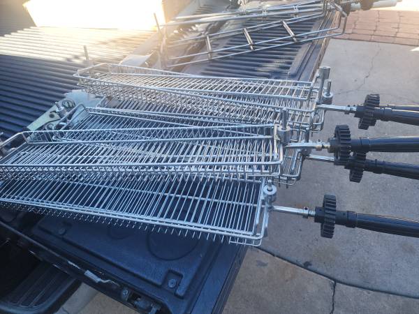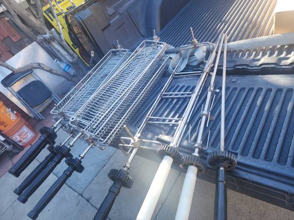 I have 6 baskets and 3 rod spits for chicken the baskets can be used for vegetables or potatoes on a southern pride rotisserie machine They usually cost 200. A piece selling all for 500.