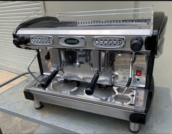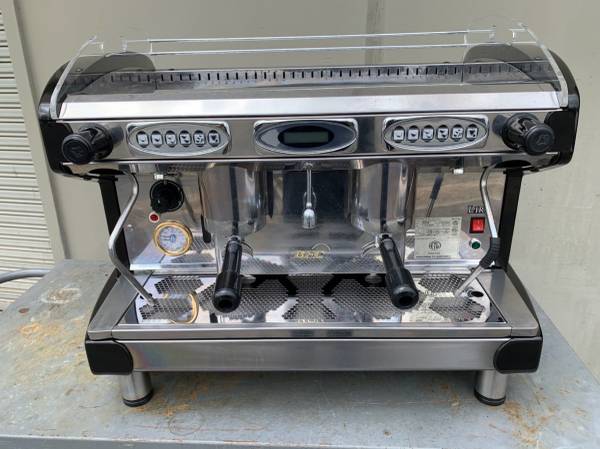 The machine it’s made in Italy 100% , 2 groups, programable shoots , 14 liters boiler , 2 steamers , hot water dispenser , Needs electricity 220v. 20 amps Very solid machine ,Great deal for coffee shop or restaurants