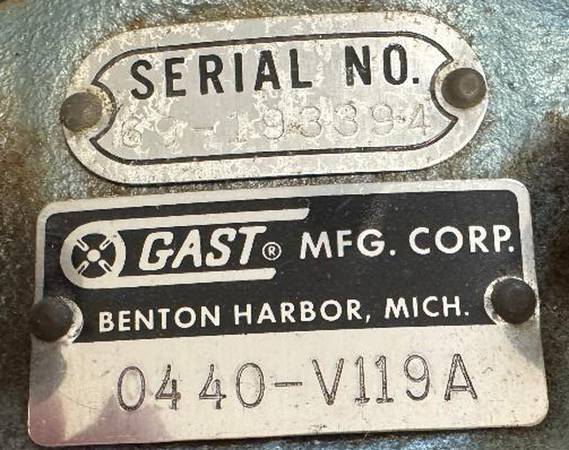 serial # reads: 69-193394, shaft is 7/16". Unit is about 4" wide, stands 5" tall at the body, 6" from butt end to tip of shaft. Cast iron construction. I Just tested it with my drill press and it sucks and pumps!