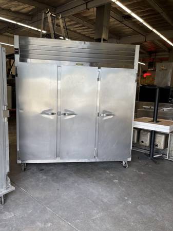 Traulsen G31010 77" G Series Solid Door Reach-In Freezer with Left / Right / Right Hinged Doors The spacious 69 cubic foot interior of this Traulsen three door reach in freezer comes standard with 9 epoxy coated wire shelves capable of holding 225 lb. each. Four 6" casters with brakes make the Traulsen G31010 three section reach in freezer easy to move for cleaning.