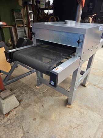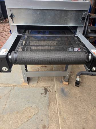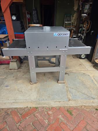 Workhorse products odyssey compact conveyor dryer. Like new, 22" wide belt, 30" x 67 " infrared conveyor dryer. 18" x 20" heater 2300 watts. This screen printing dryer operates on 120 volts , variable belt speed controlled. Cure 120 plastisol printed t-shirts hour. Can be used to set dtg printed garments.