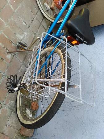 Classic Schwinn Bike for Sale $99. Includes a lock, 2 baskets in the back, a bell on the handle bar, and a never-used padded seat cover.