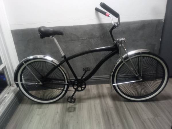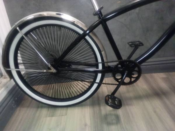 Loaded. Standard Low Rider. Rims SGV (144 spokes $250 set ) Vintage Fork Suspension White Walls Bike has zero issues and rides like a Cadillac. So smooth. Very little wear Dave 24/7 call anytime day...