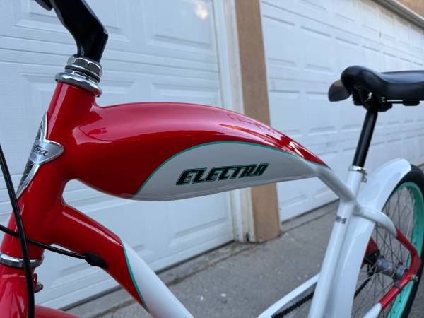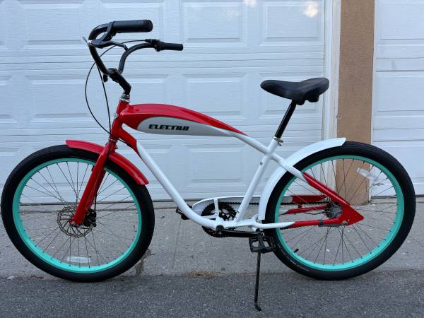 ELECTRA Beach Cruiser 2021 Limited Edition SoCal 18.5 Inch 3 Speed Shimano Nexus with rear coaster brake Red/White Frame with Green Turquoise 26 Inch Rims.