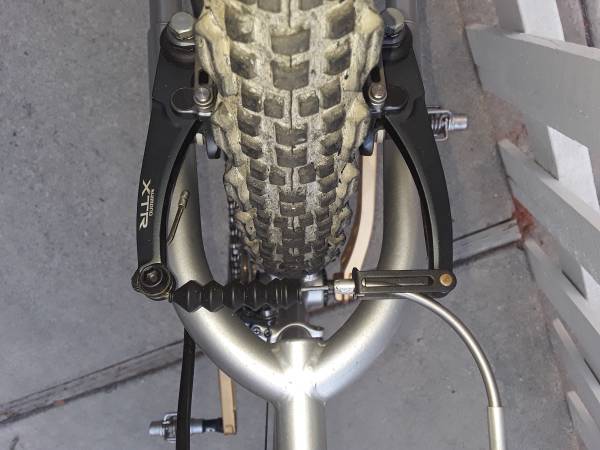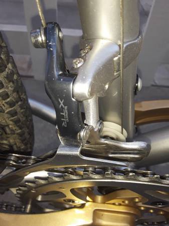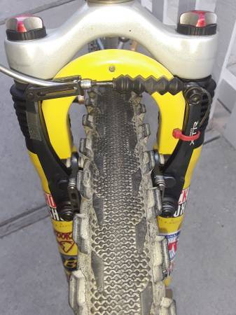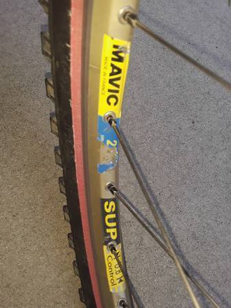 This is a pre-Trek Bontrager. Prior to being bought by Trek, Bontrager made its own rear seat stays. Pre-Trek Bontragers, like this bike, have a weld in the overlapping material of the seat stays just below the brake mounts. Trek models have a one piece stay with no welds.