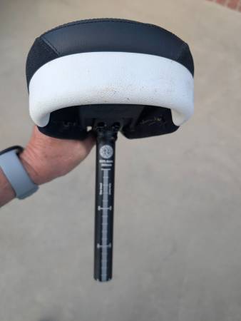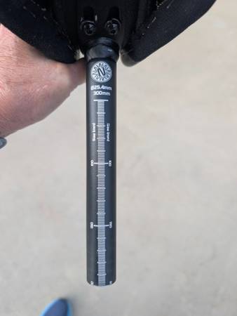 Seat post: Nimbus 30.8mm x 300mm (black) aluminum with a welded rectangular mounting bracket, 4 hole
