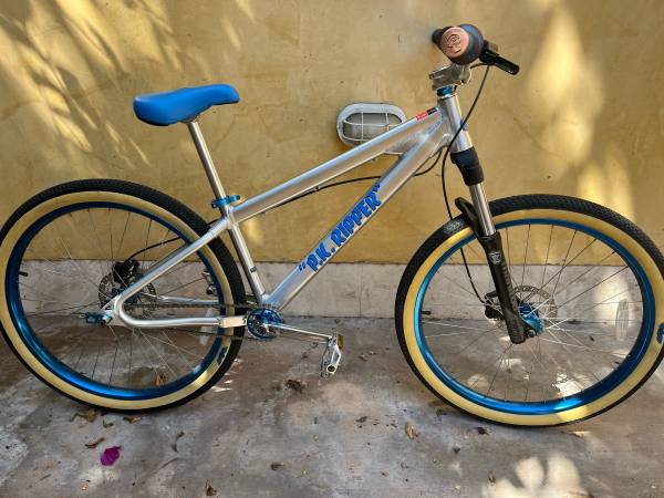 A PK Ripper like you've never seen before! The 26" DJ Ripper takes the design elements of the classic PK Ripper and wraps them into a 26" dirt jumper that will blow your mind. The frame features our legendary floval tubing, looptail rear end and tapered integrated head tube. The frame is then matched up with Manitou Circus Sport forks, 25-12 gearing with outboard BB, Tektro Auriga hydraulic disc brakes, 31.8mm stem & bars and an SE Pivotal seat. The dirt jumps are calling!