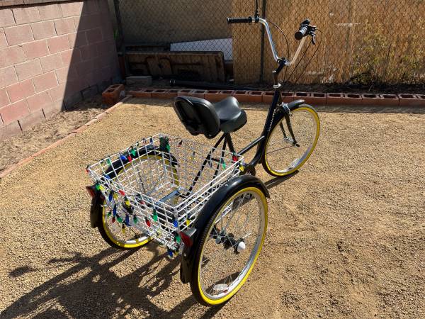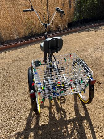 Taking a big discount on this like new adult trike - purchased a year ago for $500 and only ridden a few times. I added a back rest seat for comfort, I will include the original as well as an air pump and lights, mirror, more. Rear brake needs a little tightening.