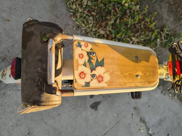Coolest bike around! Classic "Panama Jack" design with floral details and leather seat. Built in rack, Beer Holder, Bottle Opener! Super Comfy Seat, Smooth Ride! 26" wheels, like new tires, still hold air!... Was $149... NOW $50!!! Or Best Offer. Needs a little TLC, nothing "major"...