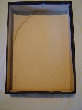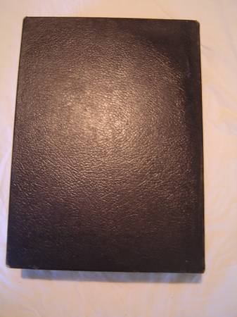 8.5"-11.75" tall. 358pp. Maps at rear. A lite smudge to the black leather-like cover. In the original box that has a corner tear and small amount of purple paint/nail polish but is still in good condition.