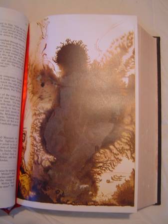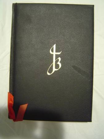 Doubleday and Company, Inc. Garden City, New York 1970. Full black leather, Beautiful gold gilt edges, two red silk bookmarks, illustrated by Salvador Dali in vibrant color, and printed in Italy! Full color offset lithographs throughout. This book came in red, black, and white. This one is black. Book Condition: Fine, beautiful clean spine and boards, very tight spine, clean pages with no signs of foxing, beautiful gilt edges with clean end paper. An exceptional copy! Coffin Case Box Condition: Good, has some piant/nail polish splash which can be cleaned, the box has some water damage only noticed from inside; one corner is torn which can be fixed. Has a well protected book.
