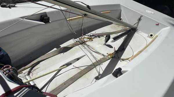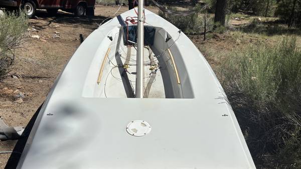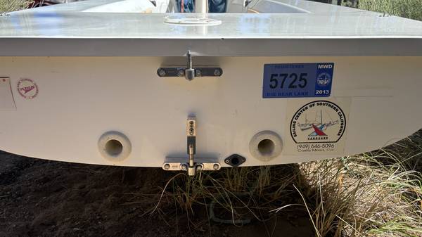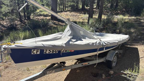 Selling my amazing Vanguard V15. Easy to rig, light and fast this boat can have you on the water in 15 minutes. Mainsail and jib with windows for improved visibility, external halyards, non-tapered mast, boom vang, self-bailing cockpit, recessed jib leads, molded fiberglass kick-up rudder, and a wide, flat stern for stability. It is know for its quick planning, incredible speed and all around fun on the water. Easy to sail and maintain, I am selling mine as I don't get to enjoy it that much. There is one ding that is sealed and water tight. It includes a trailer with lifetime plates. It is up in Big Bear Lake ready for you to come and drive it away!