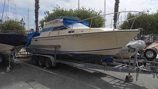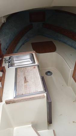 Marine architect Jack Cole’s finest work. Full stand-up interior with 7’ of headroom. Easily sleeps four in two berths, including the mid-cabin Queen berth situated under the bridge deck. Sea Magazine’s Brokers’ Choice Award. Everything is built-in and integral which makes an incredibly sturdy and clean looking trailerable offshore fishing yacht. This is a very clean, mostly original, incredibly functional Skipjack 28 in the strongest old-school thick-hulled year he built them.