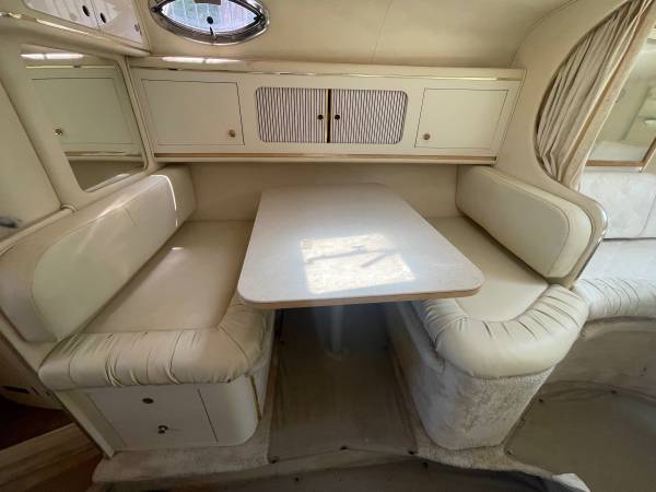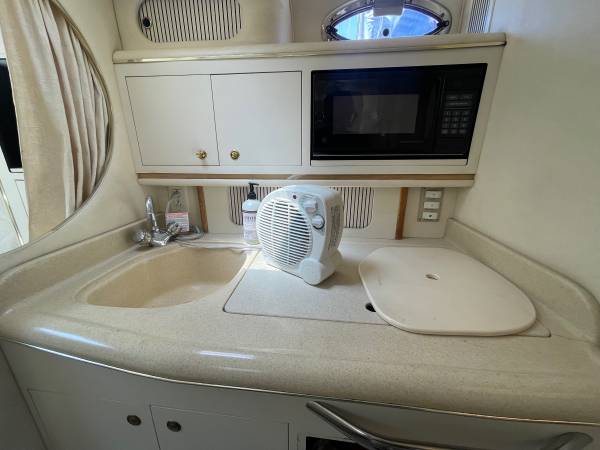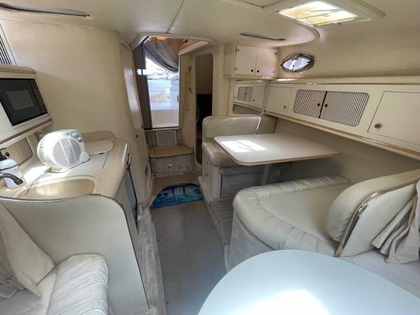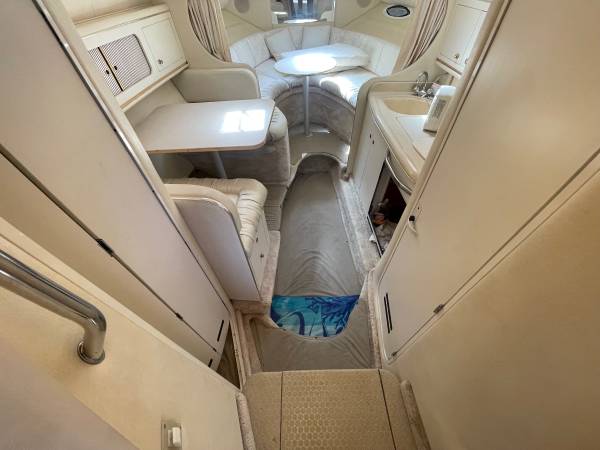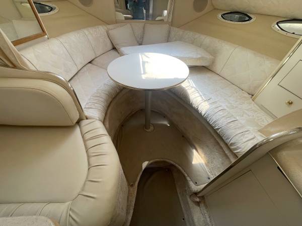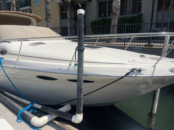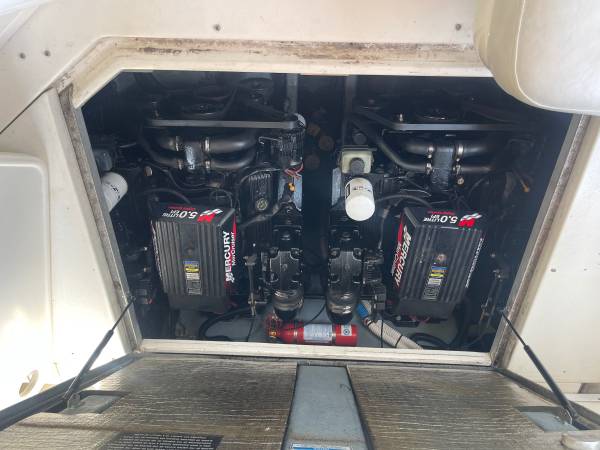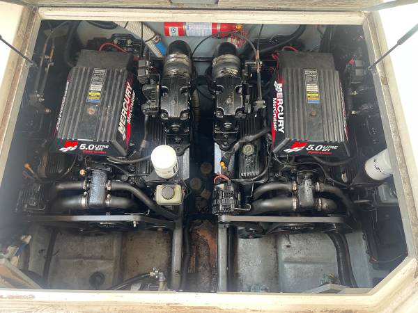 Twin Mercury 350 motors low hours 1143 Engin serviced with new exhaust manifold s and risers, tune up, oil change, tune up, New upholstery, full galley, head and shower, Slip available, spacious...