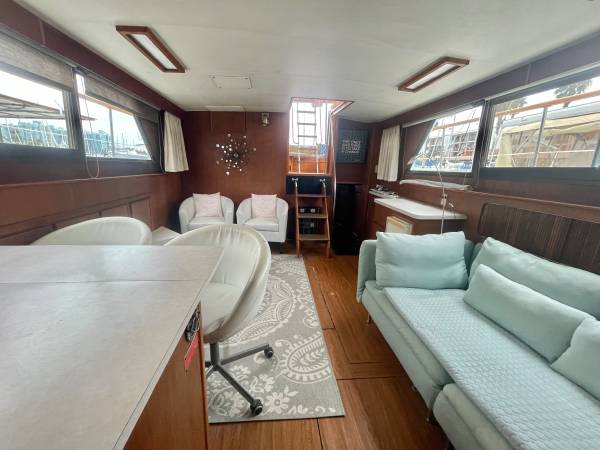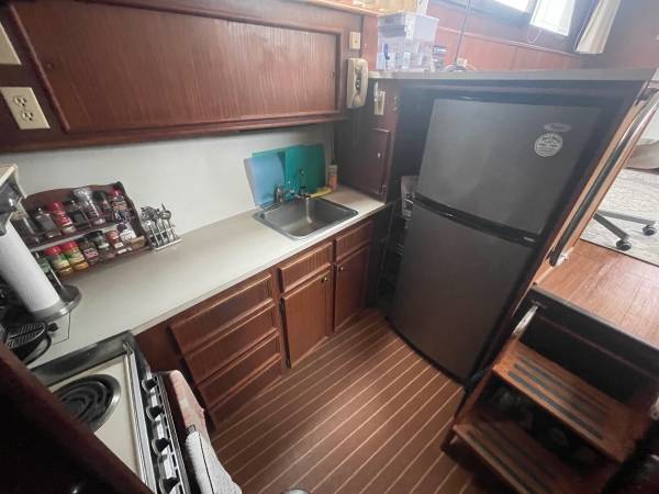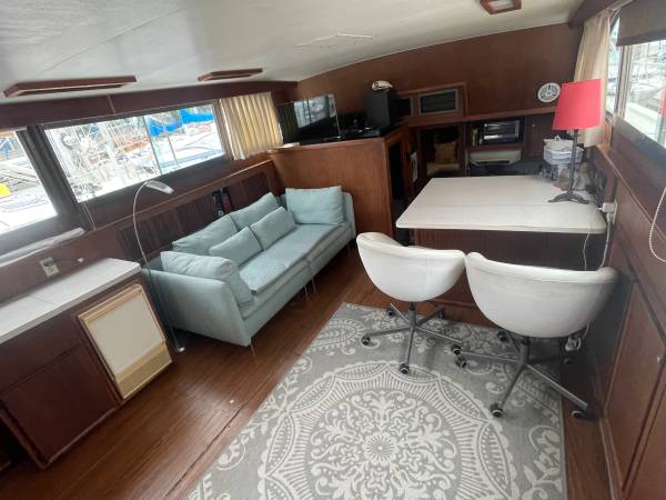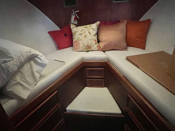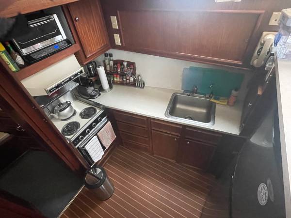 The interior is very clean and spacious with a large long salon with step down galley forward.