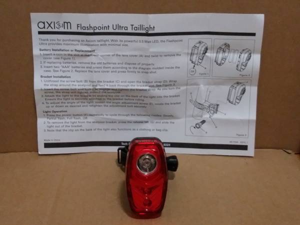 Used Axiom Flashpoint Ultra bicycle tail light. Will include fresh set of batteries. 2 available at $10 each.