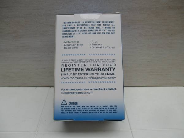 Bike Mount for Smart Phones – ROAM Co-Pilot adjustable Universal bike mount for smart phones up to 3.5” wide cell phones. Can mount on Bikes, motorcycles, Strollers, ATVs etc. Works on handlebars with average diameter of 7/8” to large of 1 ¼”. Black, NEW unopened sealed box!! $30. No shipping, No tax, No wait.