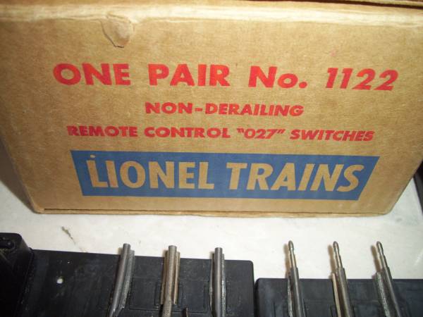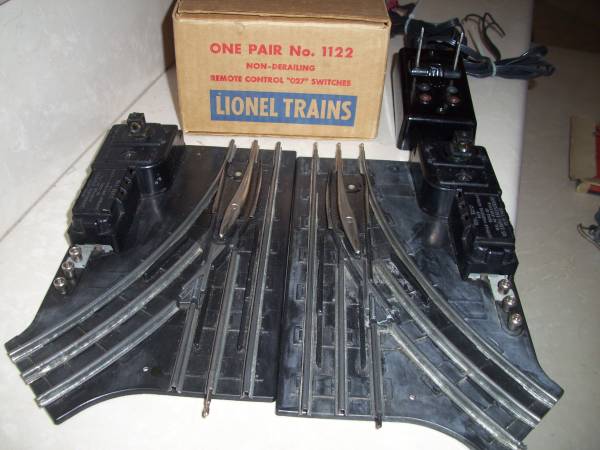 Lionel 1122 Non Derailing switches. with controller one pair, boxed $30 Non derailing switches are a real plus in operation if you aren't watching your train direction and switch direction. Lionel...