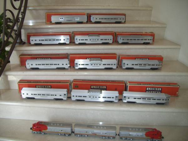 Beautiful sets of Lionel Passenger cars plus an outstanding 2343 ABA Santa Fe with dual motors that run and look like new.