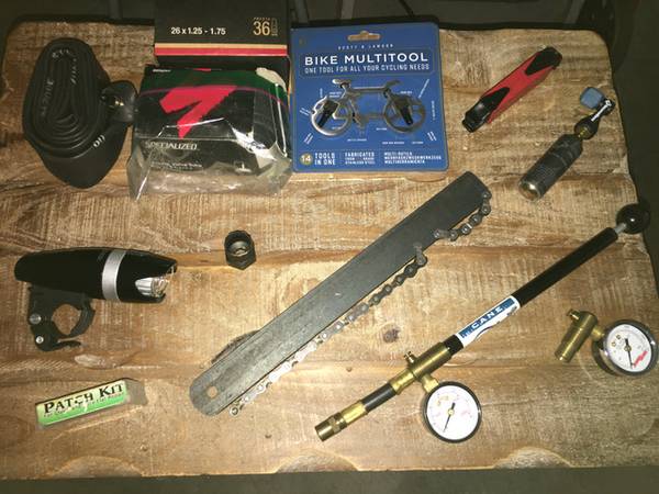 We have a number of items; Great if you like to do your own maintenance. Among these: (1) Planet Bike "Blaze" 2 watt LED headlight with bar mount, new $15 (1) Air gauge, Presta $5 (1) CO2 cartridge...