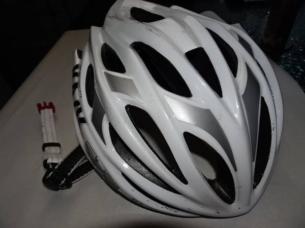 Selling a KASK Mojito cycling helmet in white with silver accents. Made in Italy, lightweight and stylish, designed for road cycling performance and comfort.