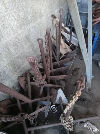 Got 10 vintage boat anchors $25each Got these from the port of San Pedro Artist collectibles . Art , Yard art ww2.
