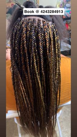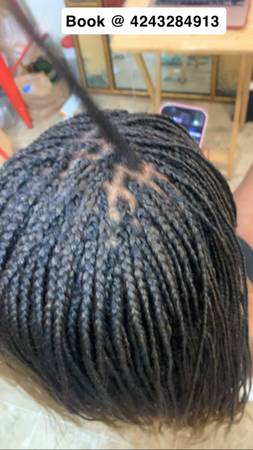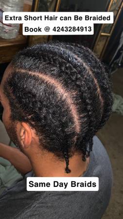 All Ethnicities, All Hair Types, Short Hair, Long Hair, Thick Hair. The fastest braider in SoCal. I have 20 years of braiding experience with men (with designs), women, and children *disabilities included*. French braids, crochet beehives, regular beehives, 2-3 layers, locs, dreads, retwist, starter locs, two strand twist, feed-in or box braids 4243284913. All ethnicities included. Please do not waste my time. GOD Bless. @styledbyolliejay on IG