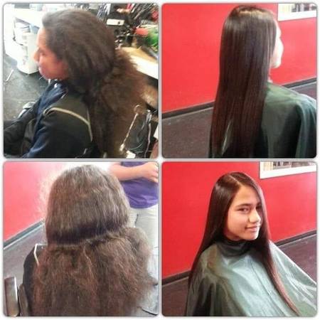 •Shampoo blowdry and flat iron with retouch relaxer $155