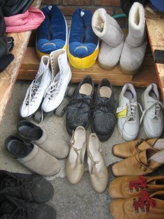 I have a pair of men's black shoes (size 11), for $10. Most of the women's shoes and other shoes are $5. I also have some special shoes (from Dr. Scholl). They are size 9W, wide width. They retail for $60. + tax. I will sell them for $35.